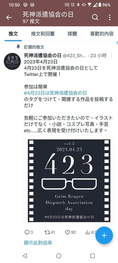 另外#4月23日は死神派遣協会の日這個活動,當423當天也會在推特刷一波,這就是檢查我自己去年委託跟拍了多少跟死神有關係的時候(?)喜歡死神的大家請一起上車吧!