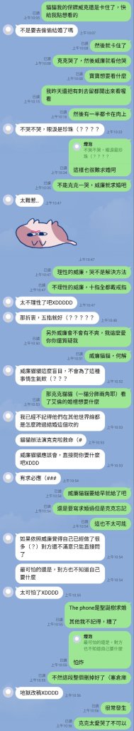 貓貓是隻好貓貓,但是對於倒在地上哭鬧說寫不出來的阿姨也不忘施以貓貓鐵拳,貓爪攻擊,貓貓表示等招數,回以愛與理性的關心跟意見,可以說是冷門CP推廣課非常重要的一環。
