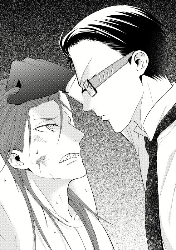 『找到你了。』走進房間的黑髮男子,看著他,推推眼鏡說。